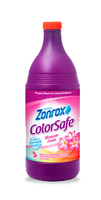 has oxygen bleach that gently cleans colored clothes. It is effective on tough stains, while protecting colors. Zonrox Colorsafe Bleach kills 99.9% of disease-causing germs and viruses.
